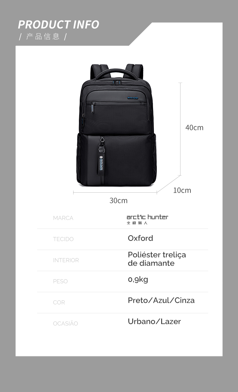 Category: business backpack Size: 30.5*14*43 Weight: 0,85 kg Material: 100% polyester